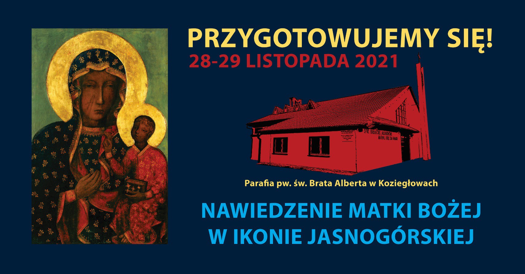 Banery informują o zbliżającym się Nawiedzeniu, a także zapraszają do udziału w tym uroczystym wydarzeniu.