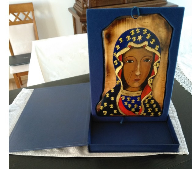 Nasza Ikona Jasnogórska, która będzie wędrować po rodzinach, doczekała się pięknego Etui, a także zabezpieczenia do tego, aby ustawić Ją w formie ołtarza. Będzie też zabezpieczona w transporcie, w czasie Nawiedzenia (z domu do domu).