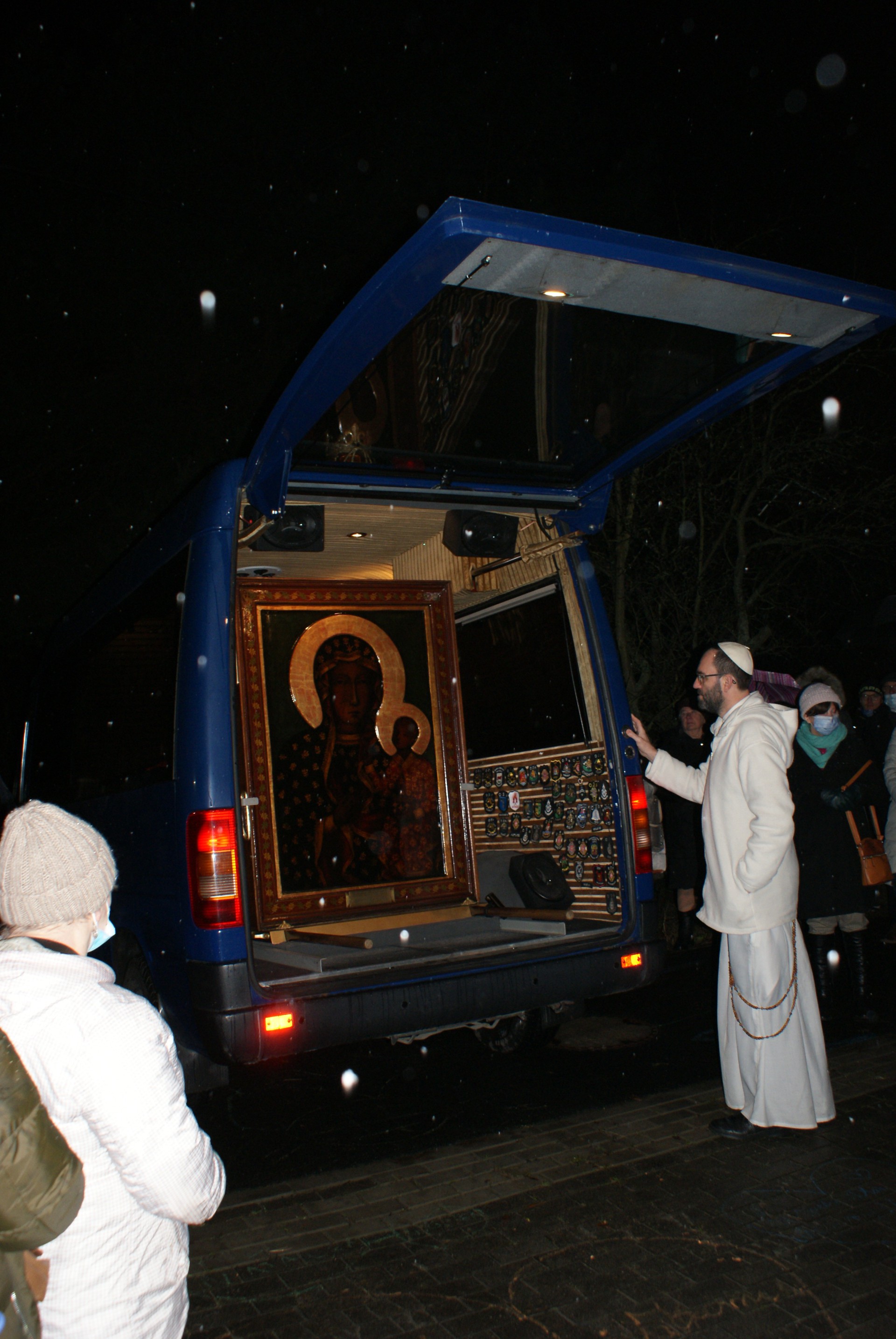 Nawiedzenie rozpoczęło się Nabożeństwem Czuwania w kościele, o godz. 17.00, z udziałem ks. biskupa Szymona Stułkowskiego. Nastepnie przejsciem z modlitwą na ustach na miejsce przyjęcia Obrazu Jasnogórskiego (na ul. Taczaka - przy przystanku autobusowym).