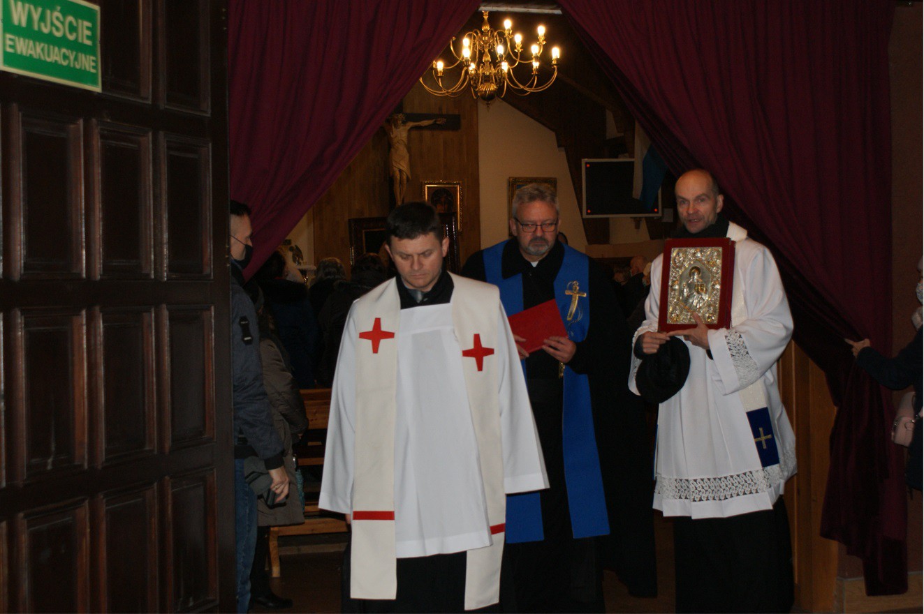 Po Mszy św. nastąpiło pożegnanie Maryi: oddaliśmy naszą parafię Niepokalanemu Sercu Maryi, dzieci ze szkoły podstawowej, małżeństwo Weronika i Paweł Sasin i ks. proboszcz podziękowali Maryi za obecność w Ikonie Jasnogórskiej. Obraz został wyniesiony z kościoła i nastepnie przewieziony do par. MB Fatimskiej w Koziegłowach (ostatnia parafia w dekanacie czerwonackim).