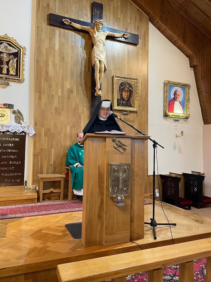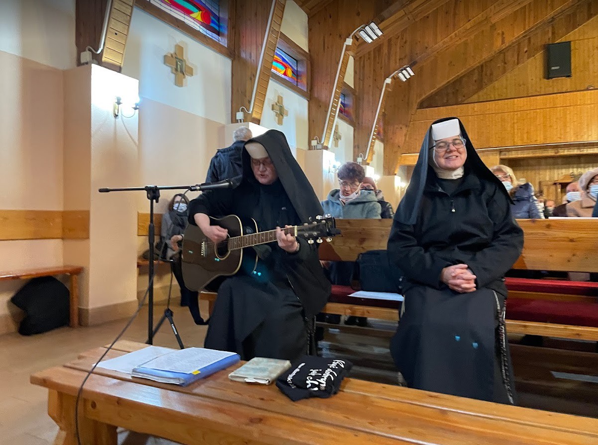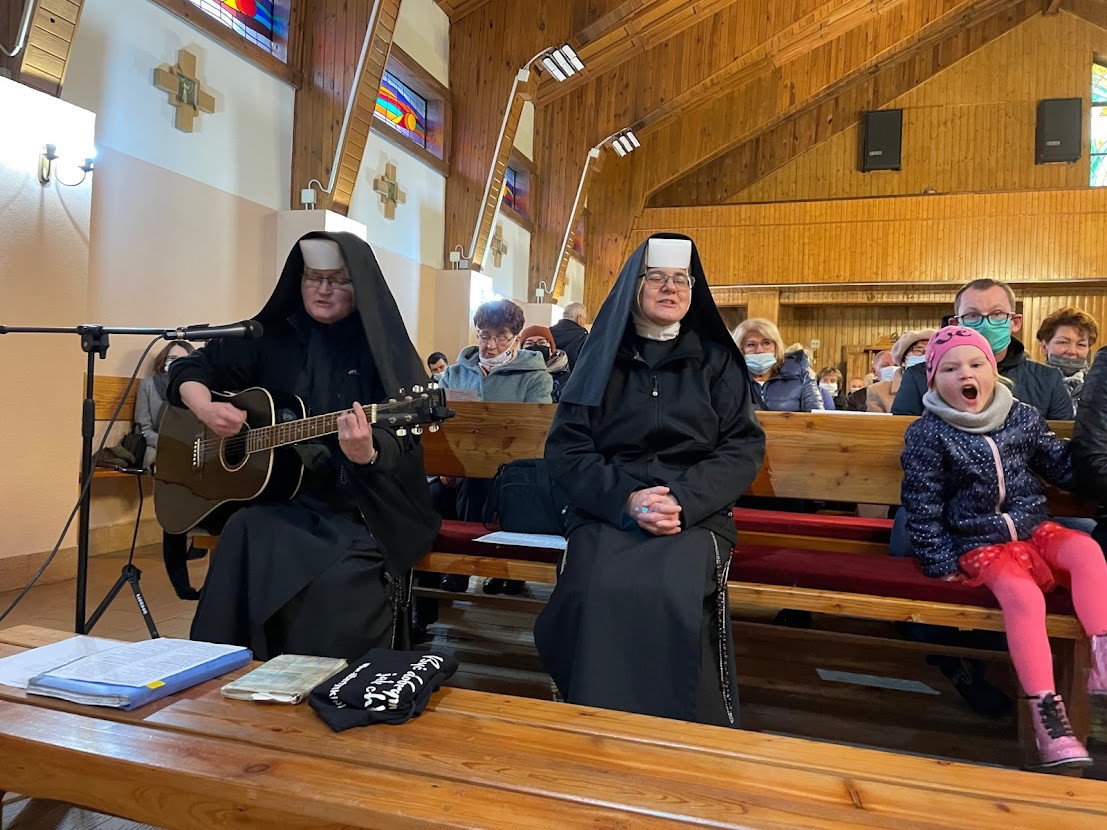W niedzielę 7 listopada (również w sobotę) gościliśmy siostry Albertynki: Dobrawę i Renatę. Na wszystkich Mszach św. oprócz wspólnej modlitwy, siostry dawały świadectwo charyzmatu dzieła św. brata Alberta, uczyły nas śpiewów o św. bracie i rozprowadzały kalendarze sióstr z okazji 50 lecia prowincji poznańskiej.