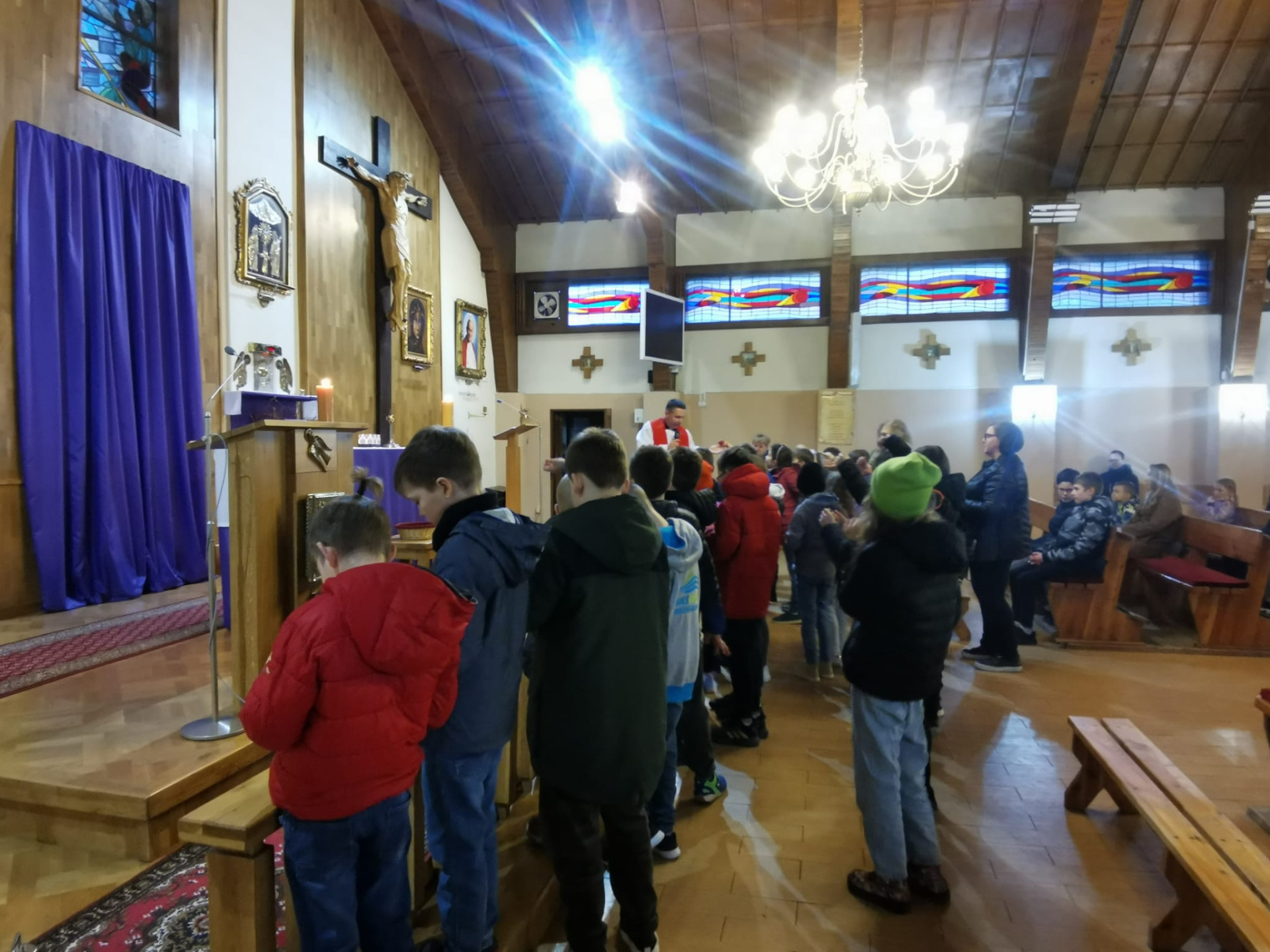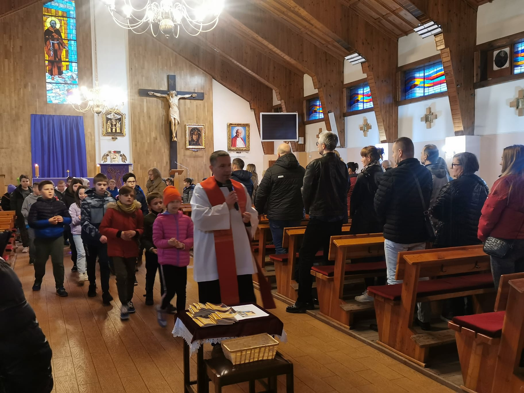 Poświęcenie medalików dzieci pierwszokomunijnych i nabożeństwo pokutne dla rodzin.