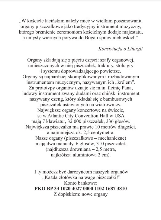 W czasie uroczystej Mszy św. na organach grali: pan Piotr nasz stały organista i Bartek Adamski - kleryk ASD z Michorzewka.