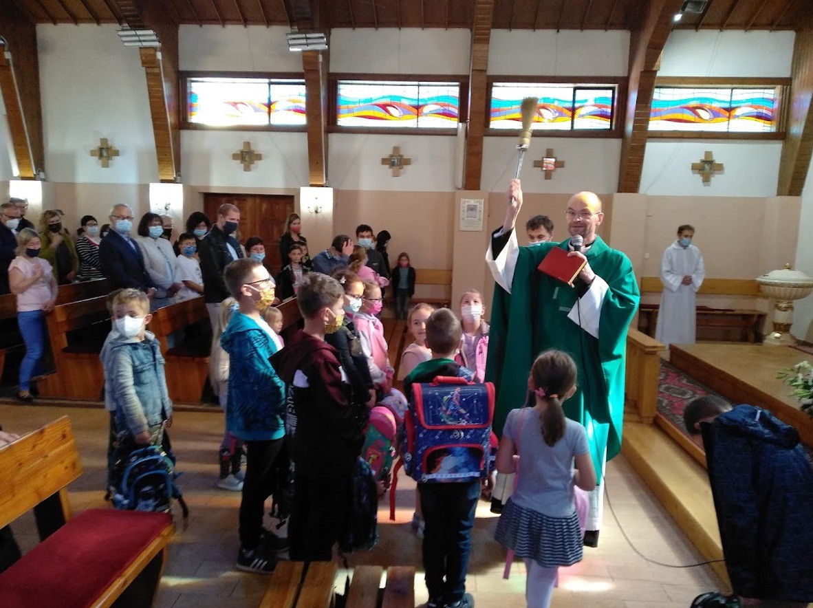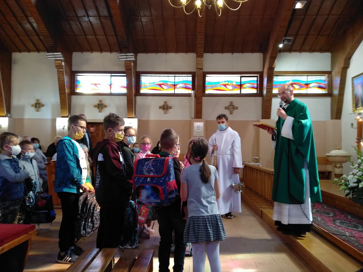 W niedzielę 5 września na Mszy św. o godz. 10.30 zostały poświęcone tornistry pierwszoklasistom. Także dzieci ze szkoły podstawowej otrzymały książeczki do Niedzielnych Mszy św. z obrazkami z Liturgii Słowa.