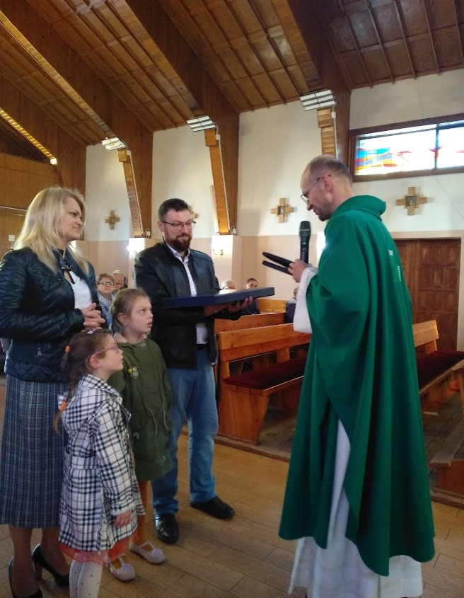 A/Rozpoczynamy Mszą św. (w niedzielę o 12.15, w tygodniu o 18.30). Rodzina może włączyć się w liturgię, przynieść dary. Dobrze być w stanie łaski uświęcającej i przyjąć Komunię św. Na końcu Mszy św. przed błogosławieństwem rodzina otrzyma Ikonę z zestawem modlitewnym (z modlitwami do Matyki Bożej, z rozważaniami różańcowymi, z tekstami o kulcie Maryjnym). Także rodzina otrzyma Księgę Nawiedzenia i oddania się Matce Bożej, gdzie będzie mogła dokonać swojego wpisu.